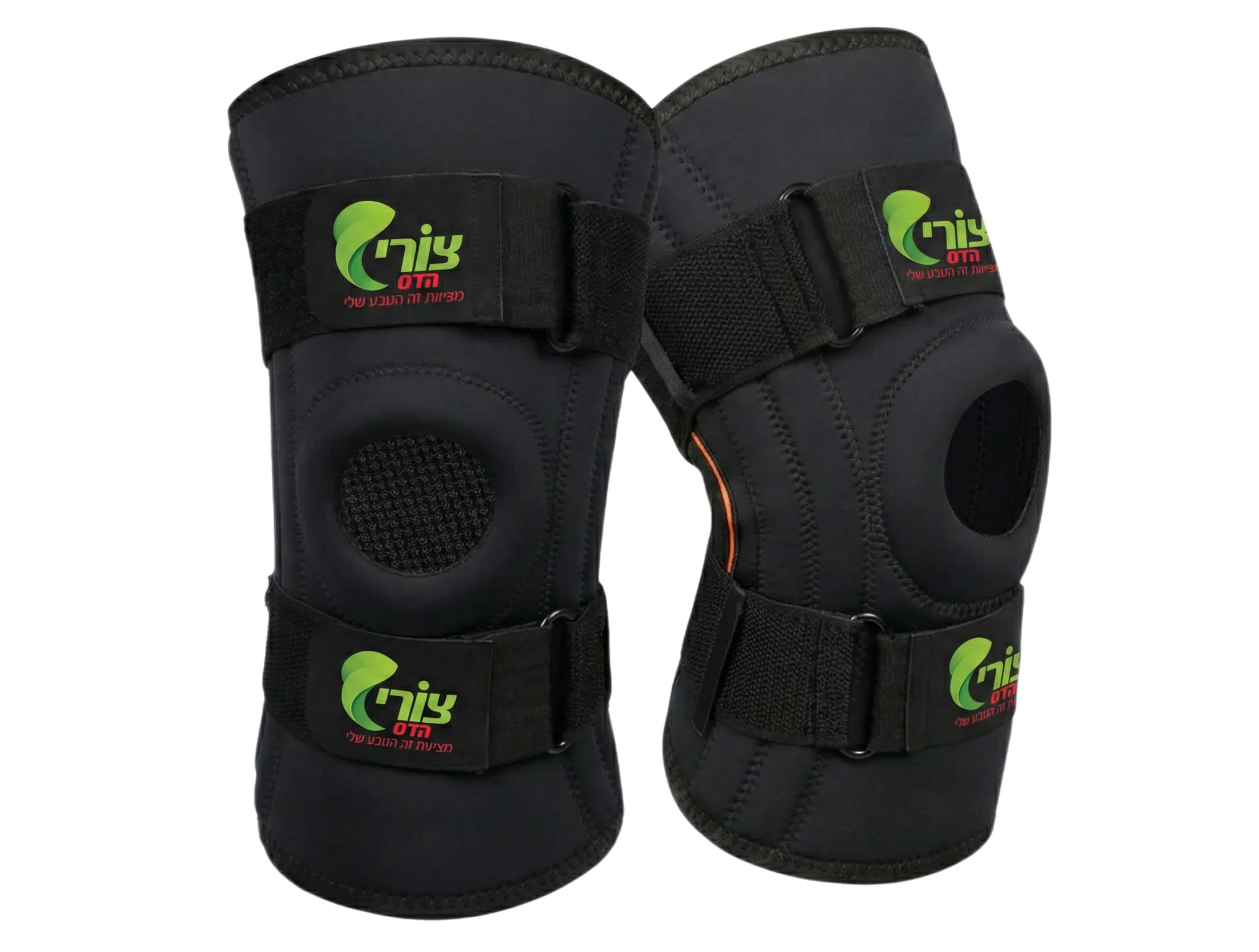 מערכת הידוק כפולה : שתי רצועות סקוטש (Velcro) חזקות המאפשרות התאמה אישית של רמת הקיבוע מעל ומתחת לברך.
